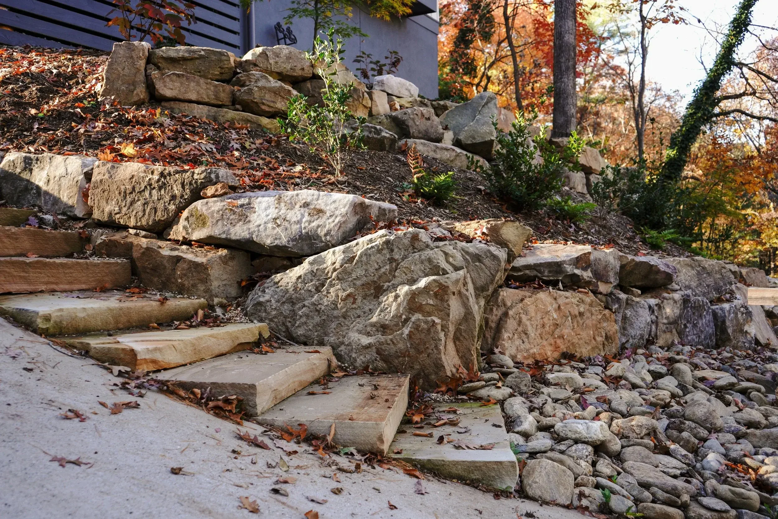 Natural Boulder Walls: High-durability, aesthetic boulder walls that blend into your Blue Ridge landscape.